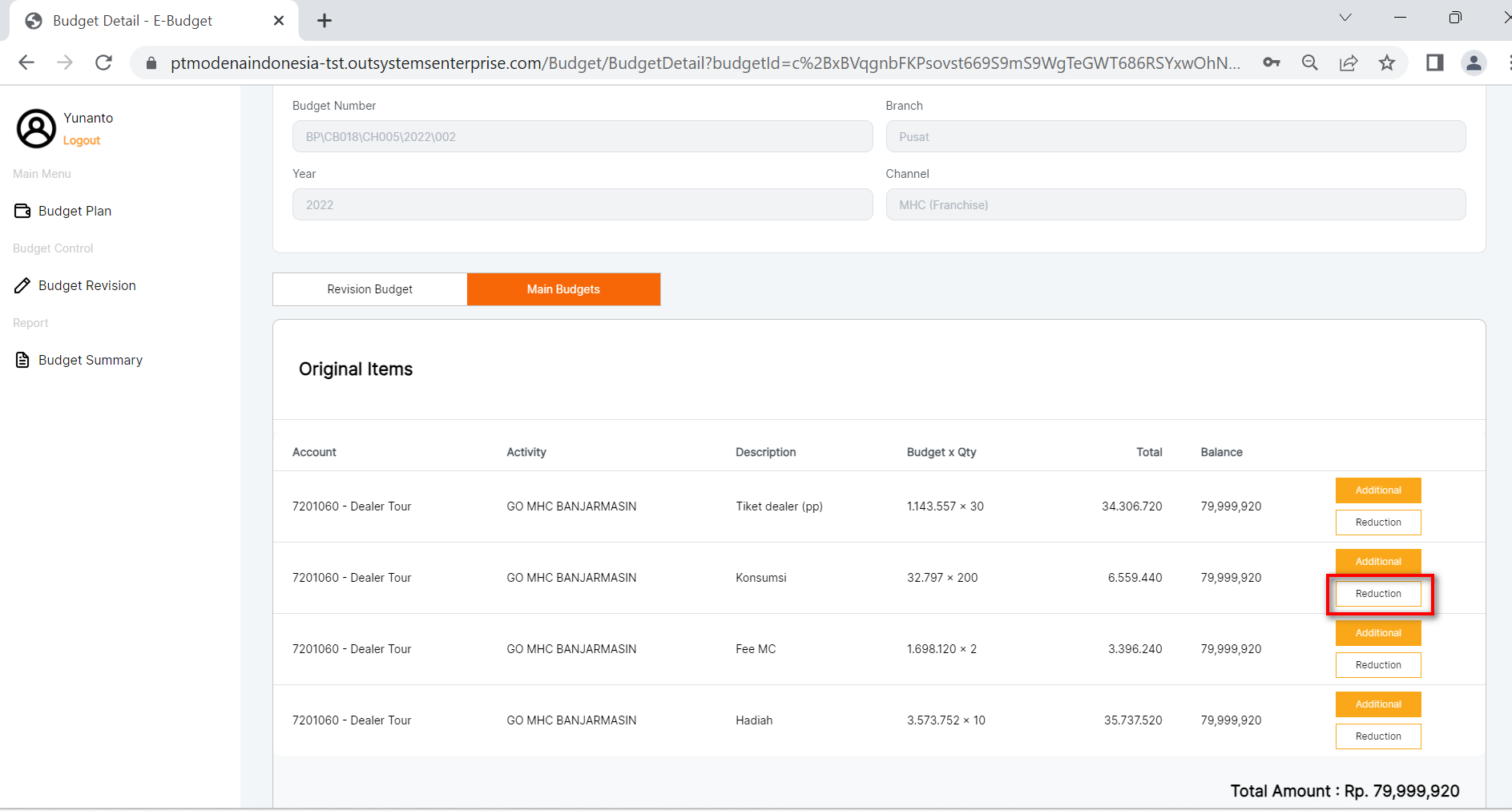 - Klik Button Reduction apabila ingin melakukan pengurangan budget