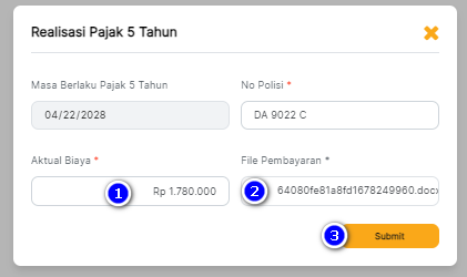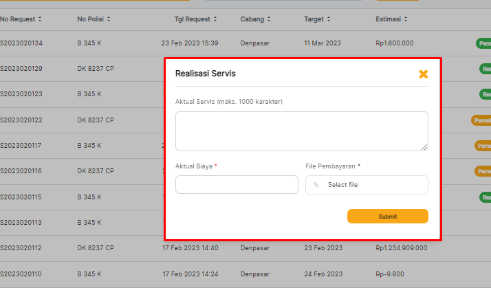 - Setelah proses servis selesai dilakukan, dapat input data realisasi pada Ikon Realisasi