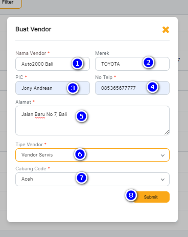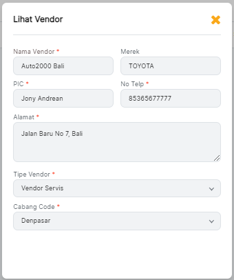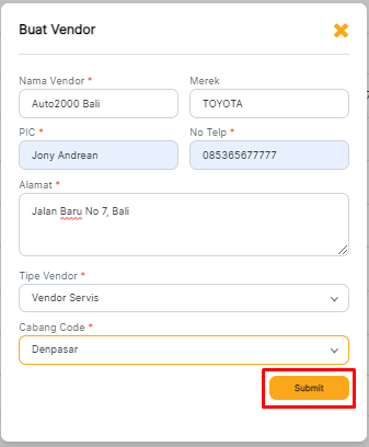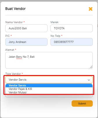 Vendor Servis untuk kebutuhan Permintaan Servis Kendaraan