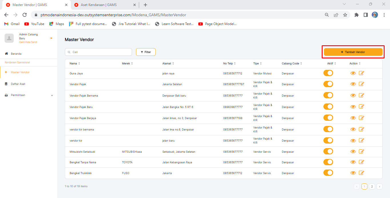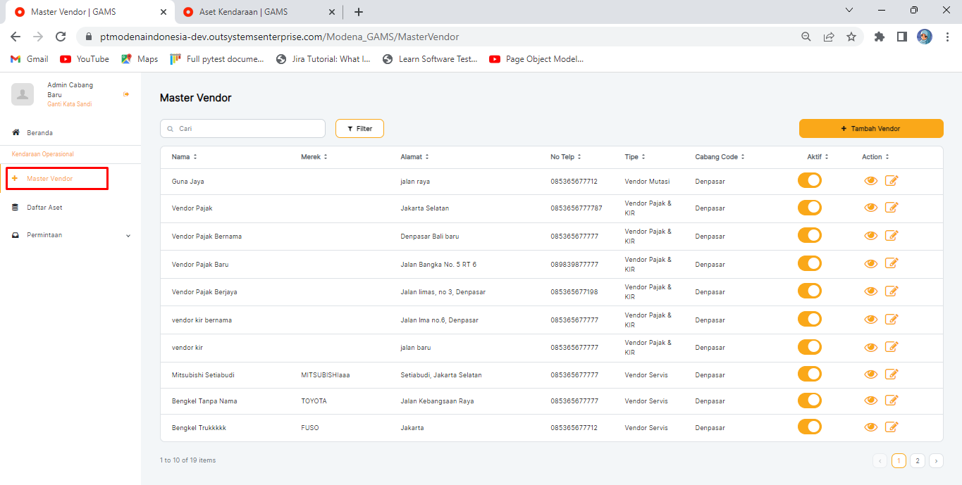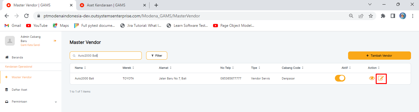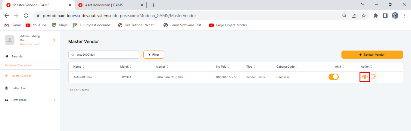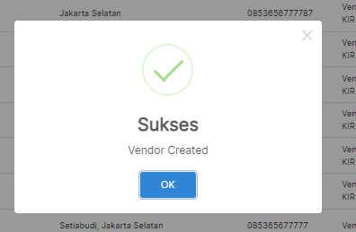 - Vendor yang sudah di buat akan muncul pada Menu Master Vendor