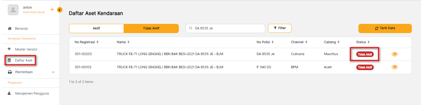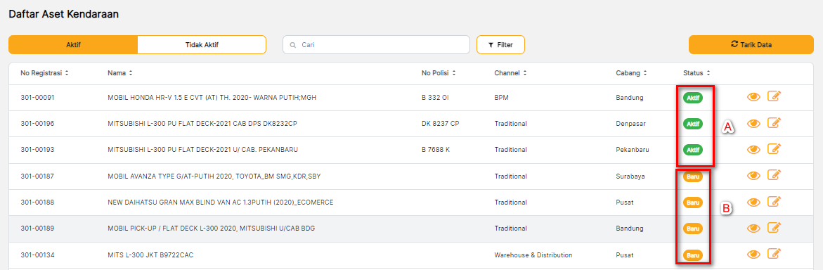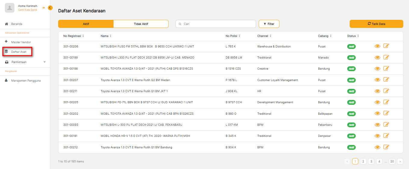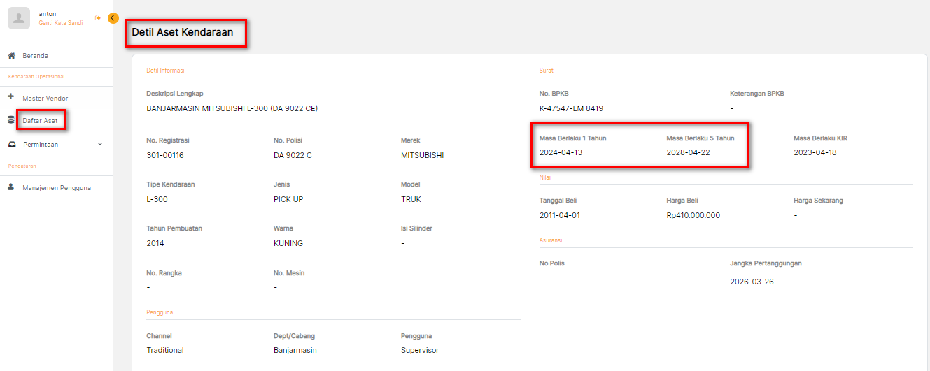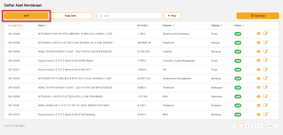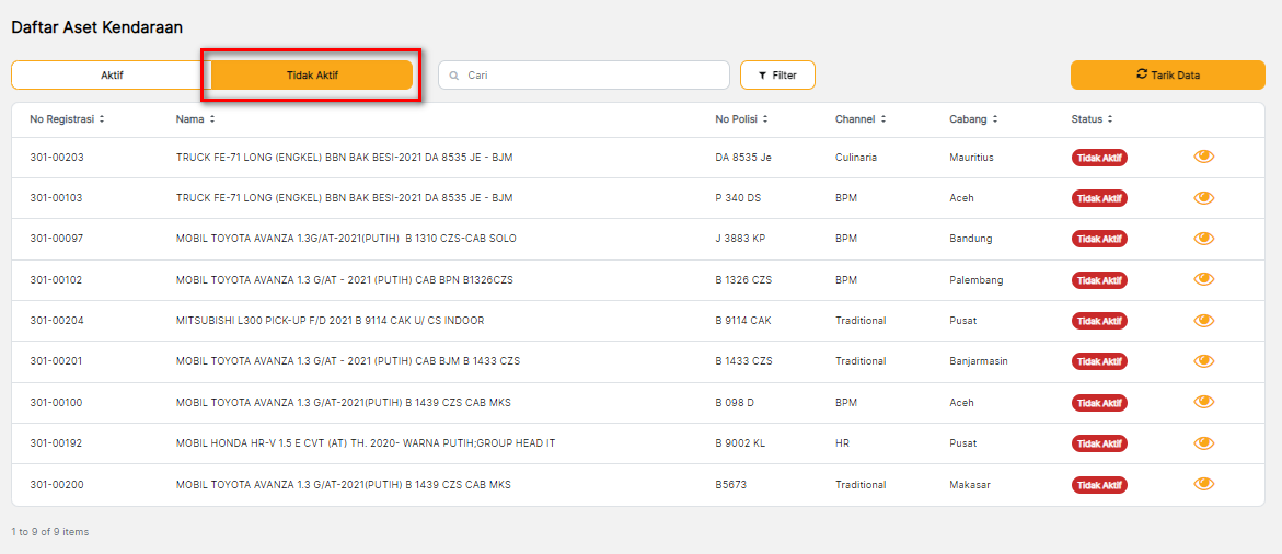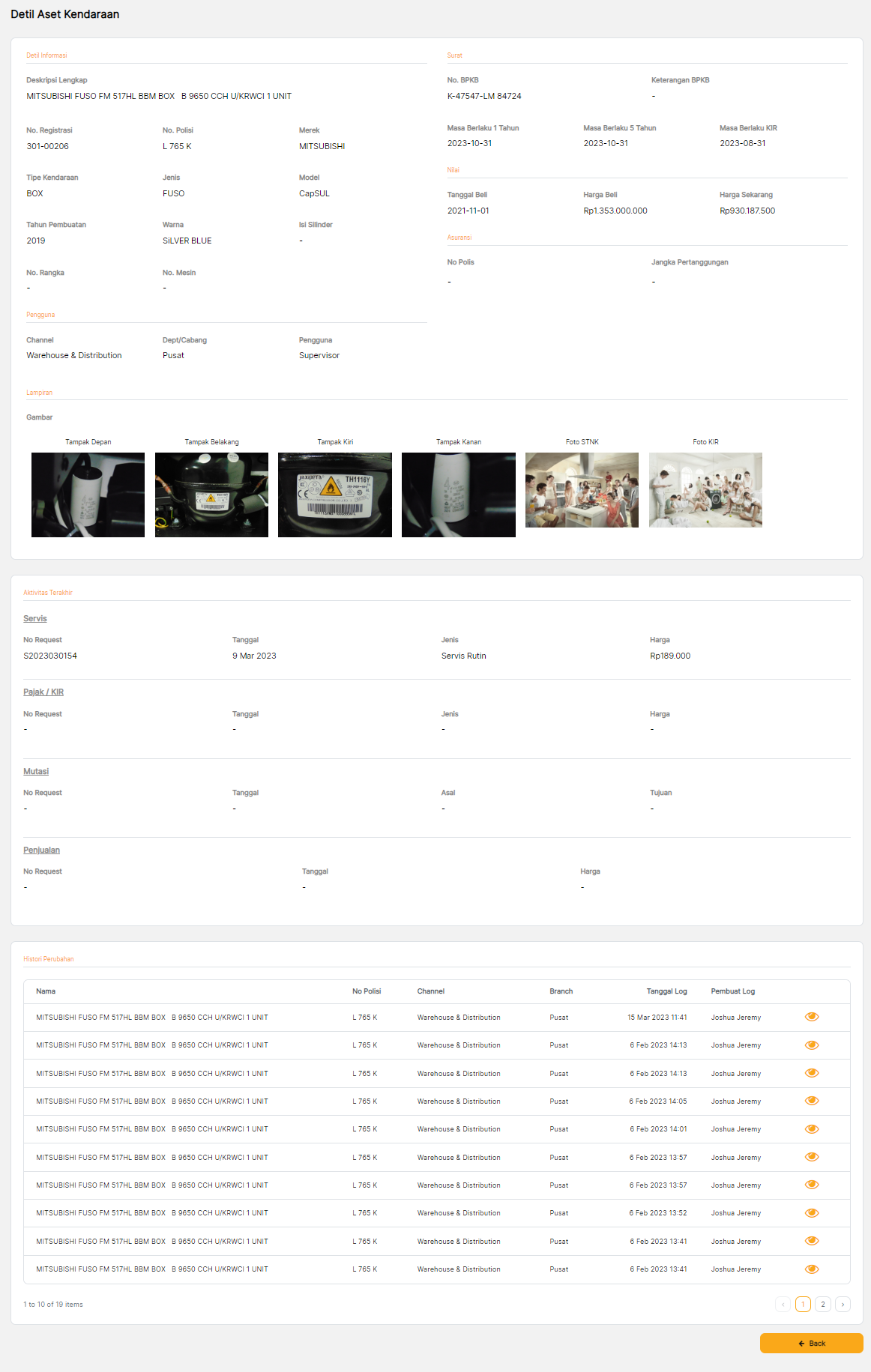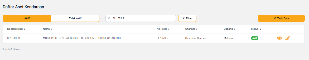 Lokasi kendaraan akan update ke cabang dan channel yang dituju, dapat di cek pada menu daftar aset