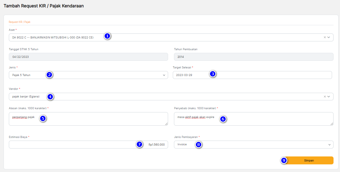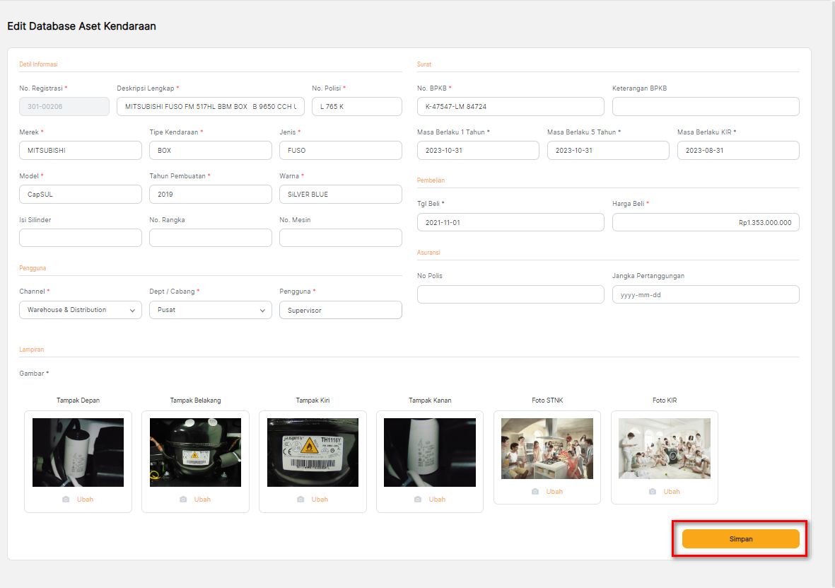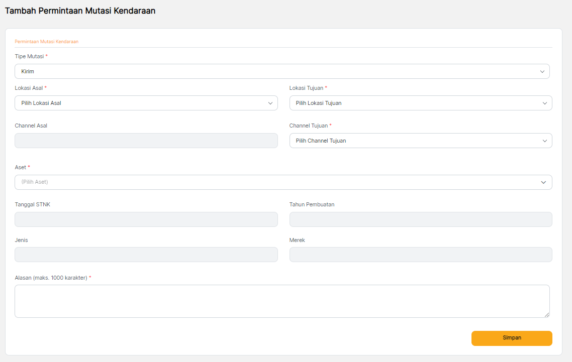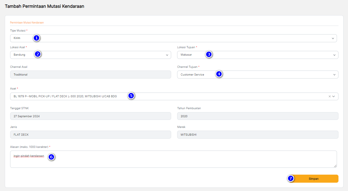 - Klik Tombol Simpan untuk menyimpan data Mutasi kendaraan