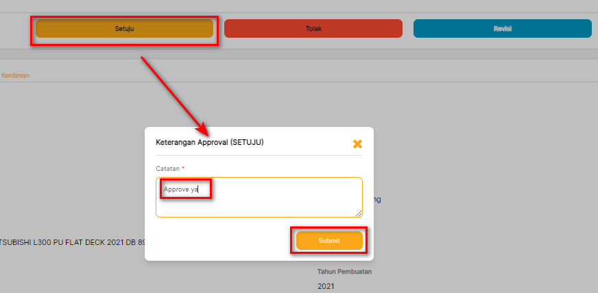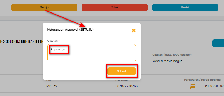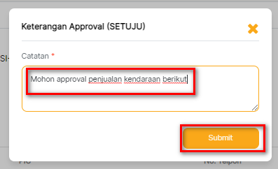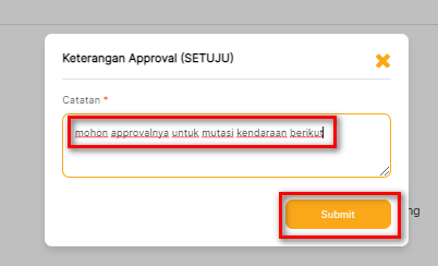 | * Setiap status approval yang dipilih terdapat catatan dari approver yang wajib diisi |