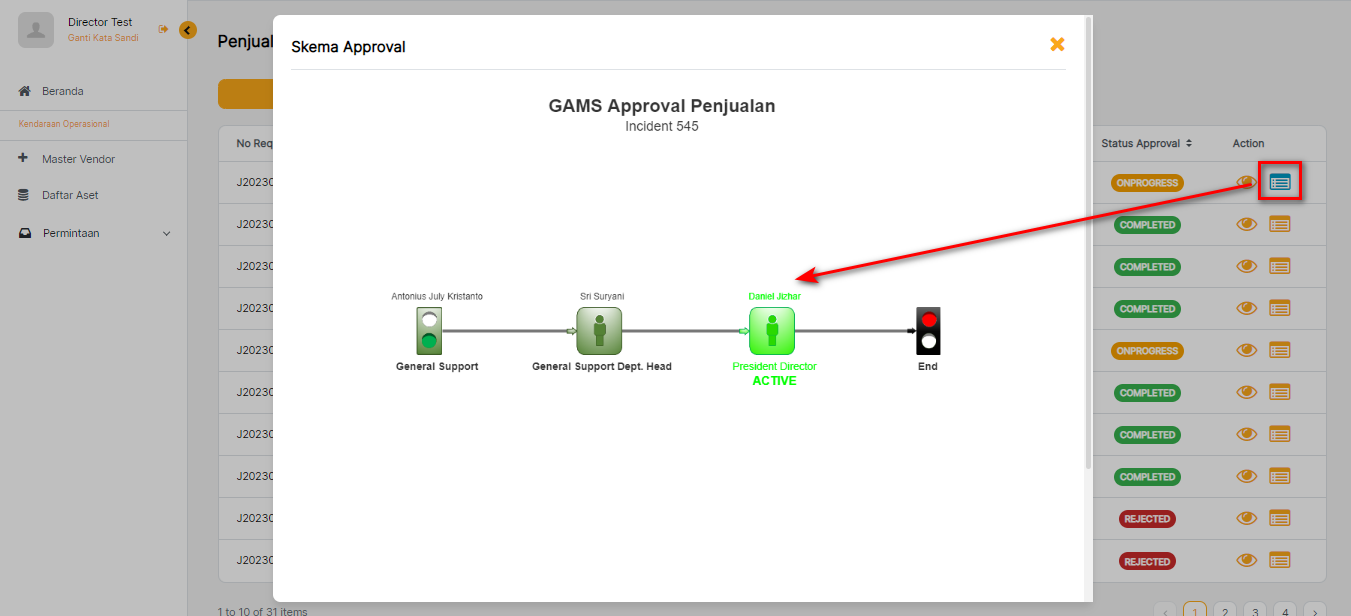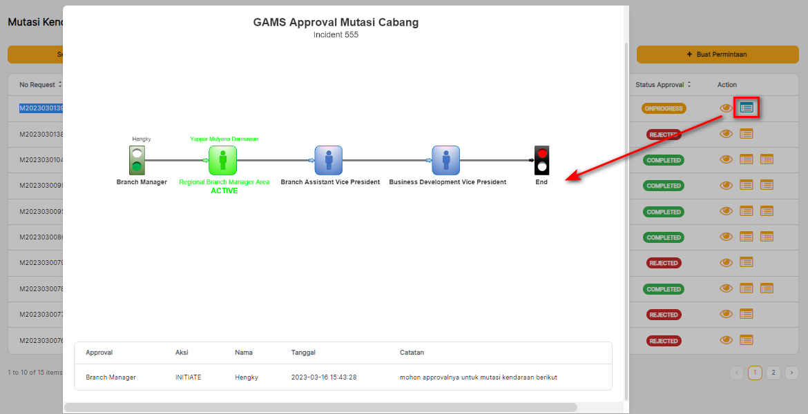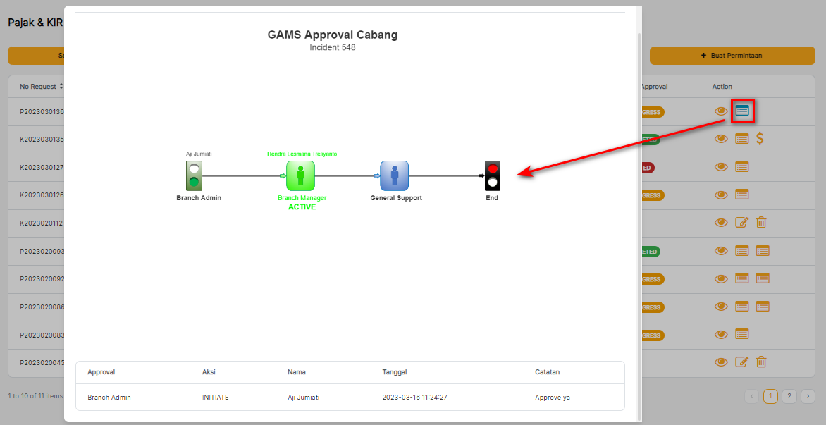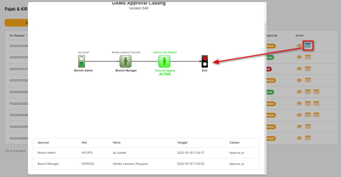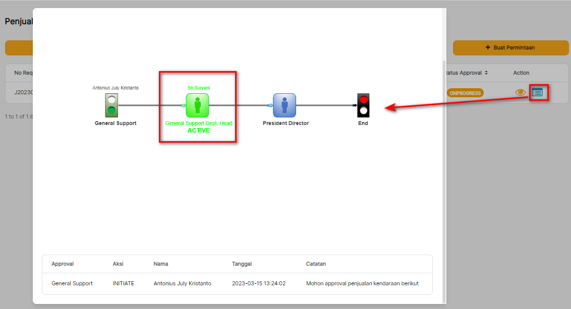 Setelah berhasil kirim permintaan akan muncul ikon Approval Request yang akan menunjukan posisi Approval