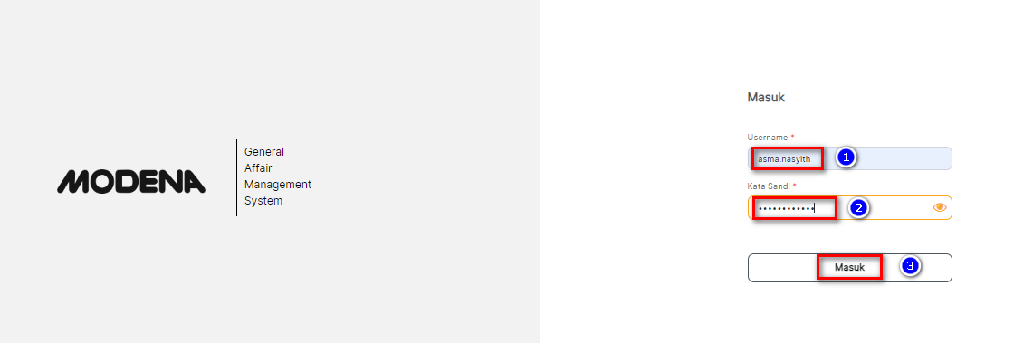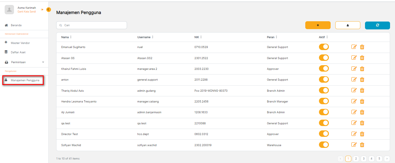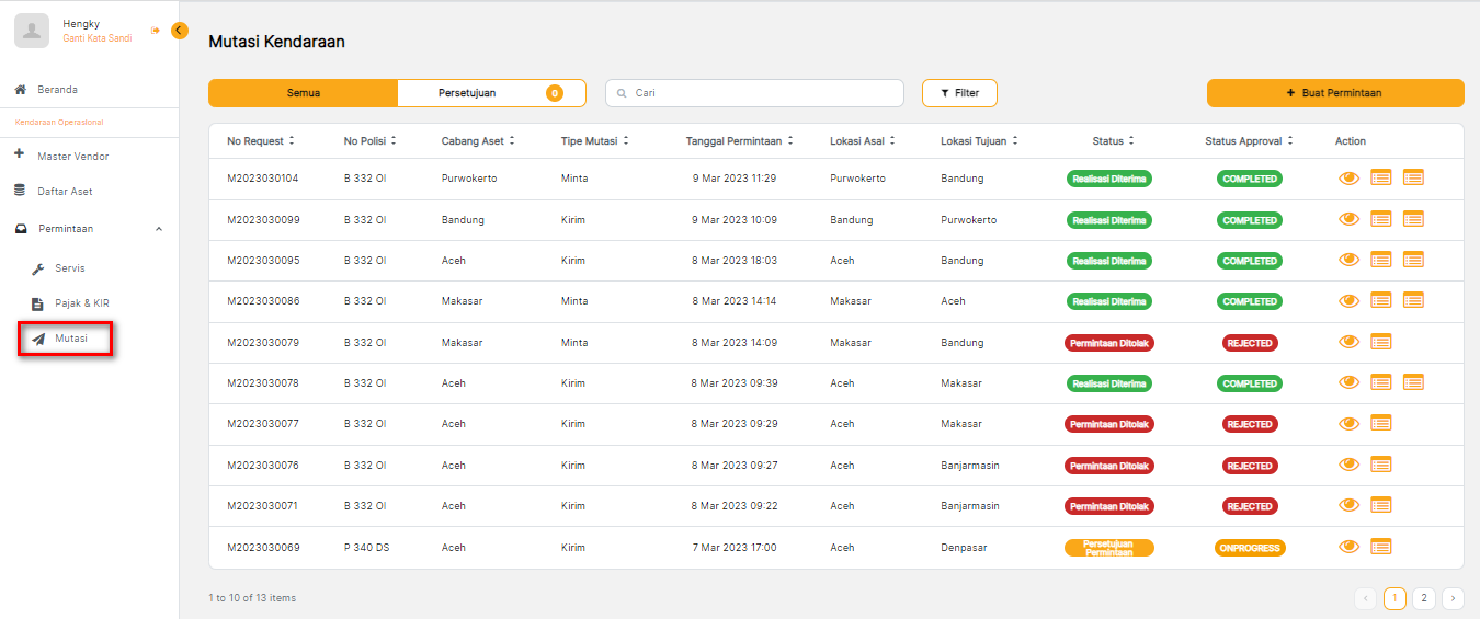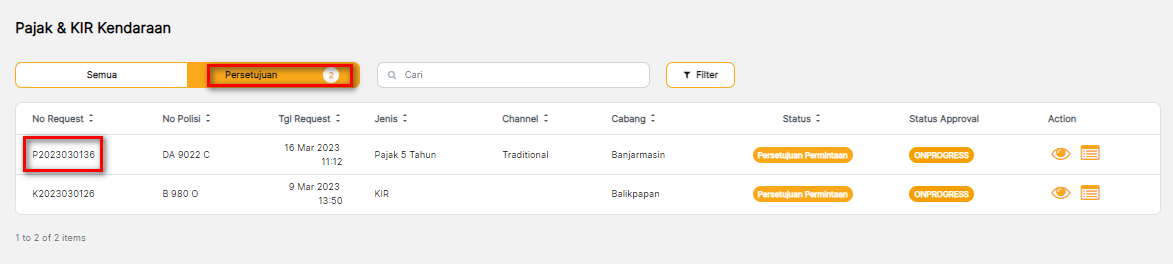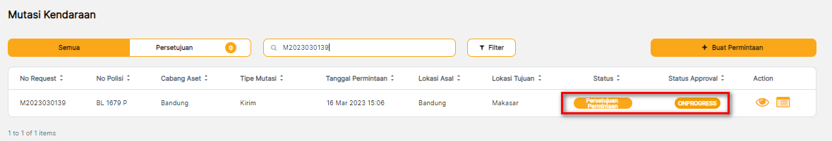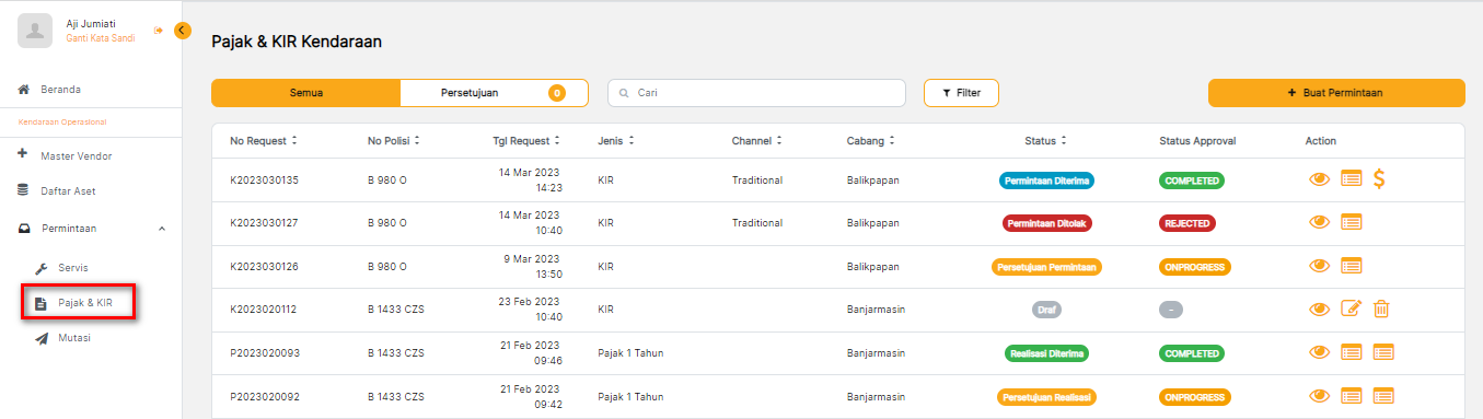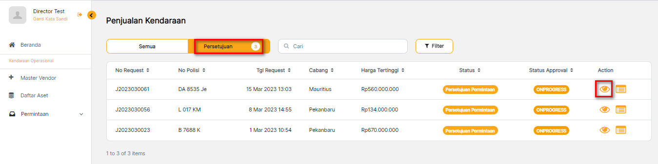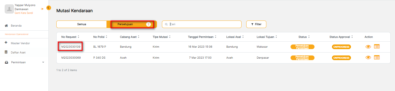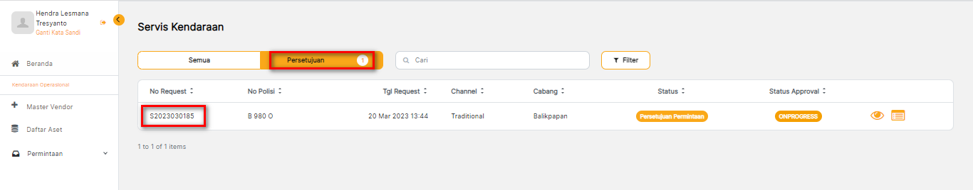 - Pada akun approver yang sedang aktif akan muncul data requestnya pada tab persetujuan