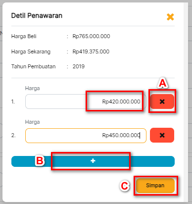 A. Menghapus harga dari list B. Menambah list harga C. Simpan list harga penawaran |