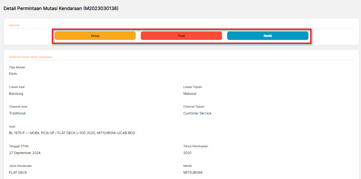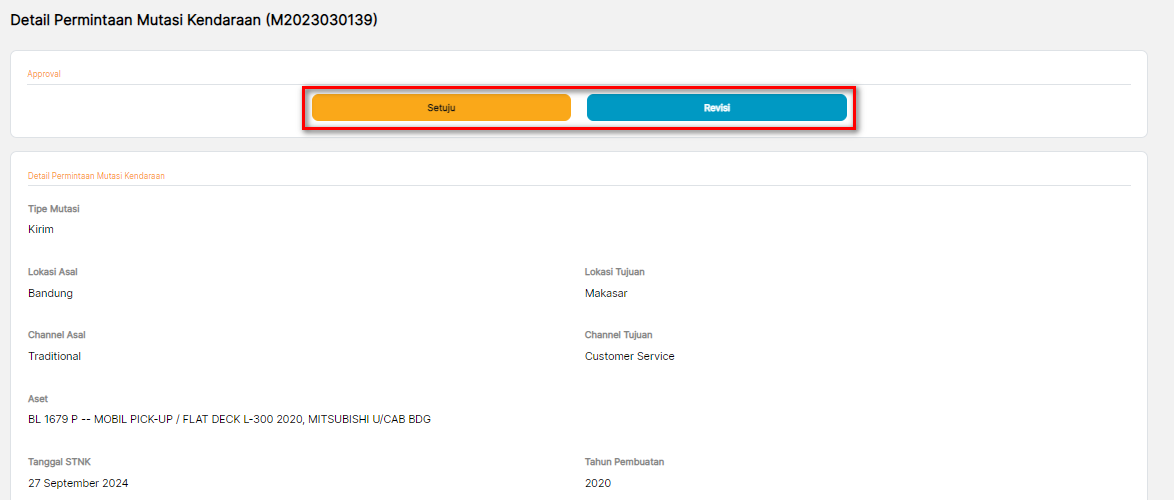 Setuju >> Menyetujui permintaan dan melanjutkan ke proses selanjutnya