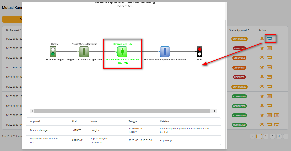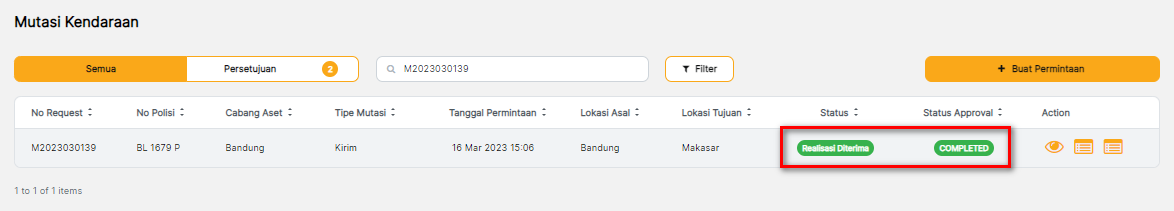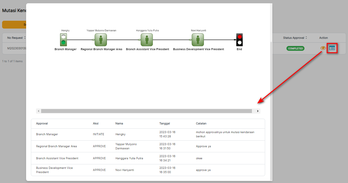 - Setelah Proses Permintaan disetujui hingga Approver terakhir, Proses Approval mutasi Telah complete.
