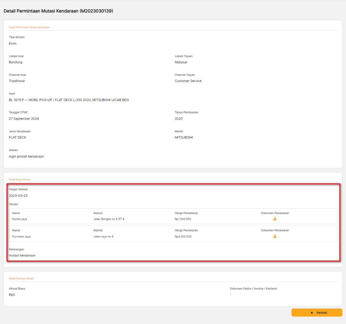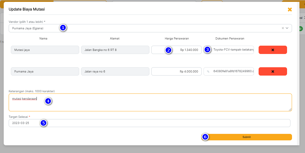 Vendor Mutasi untuk kebutuhan Permintaan Mutasi Kendaraan