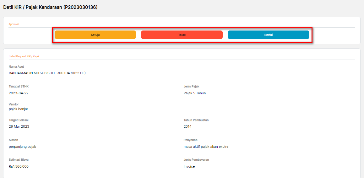 Revisi >> butuh revisi dari requestor untuk data permintaan yang diajukan