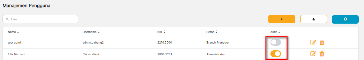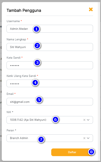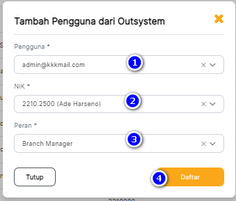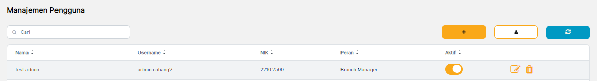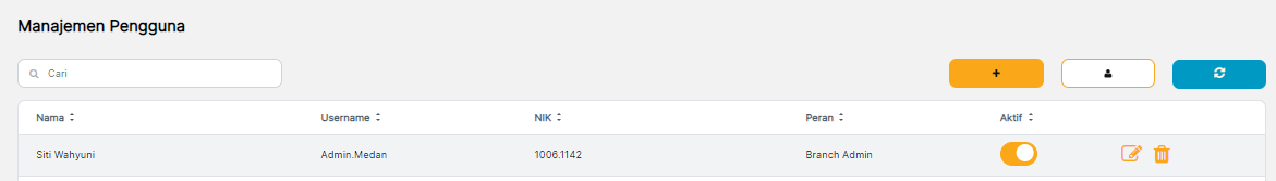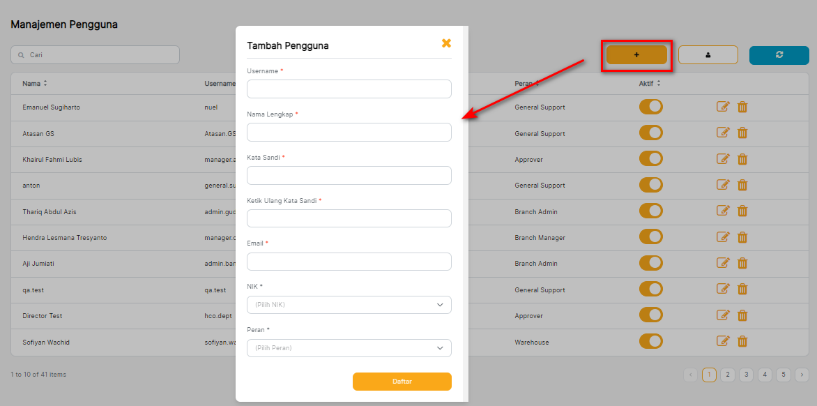- Klik tombol Tambah (+) untuk mendaftarkan pengguna baru