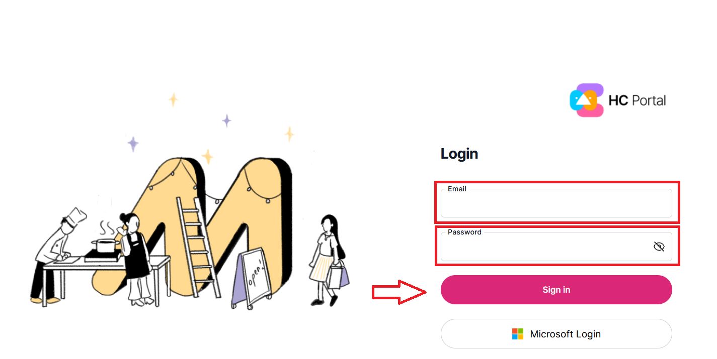 Halaman login merupakan halaman utama ketika user pertama kali mengakses system. Berikut langkah-langkah nya.1.Buka URL https://hc-portal.modena.com pada browser