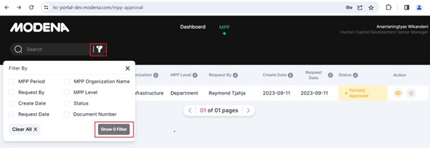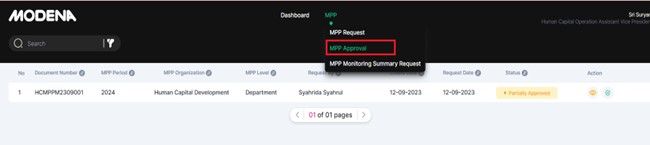 - MPP yang sudah di Submit bisa dilihat pada Dashboard atau List MPP