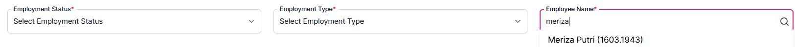 - Klik Employee name dan ketik/pilih nama karyawan yang akan dimutasi, kemudian enter